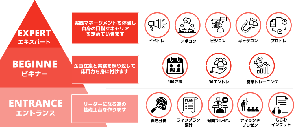 各ステージに合わせた実践カリキュラムを用意=実績ができることでステージアップが可能